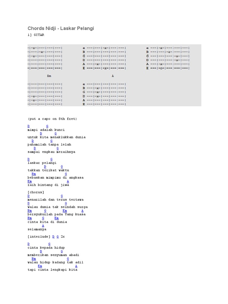 Lirik Dan Chord Gitar Laskar Pelangi By Nidji