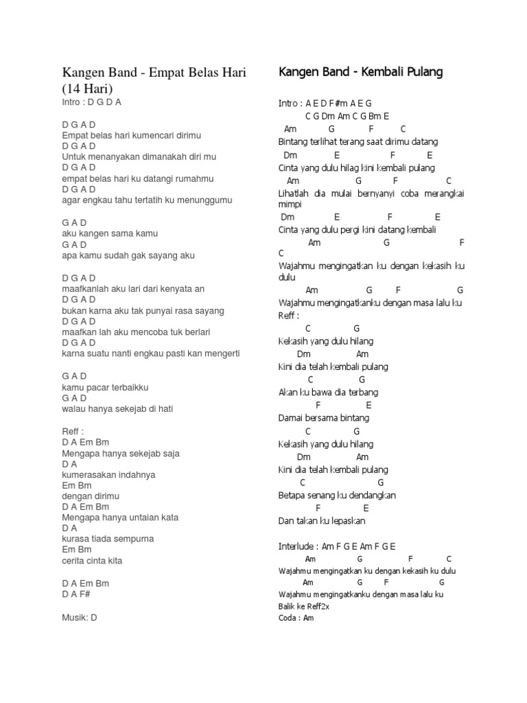 Chord Dan Lirik Lagu Kangen Band Kembali Pulang By Chord