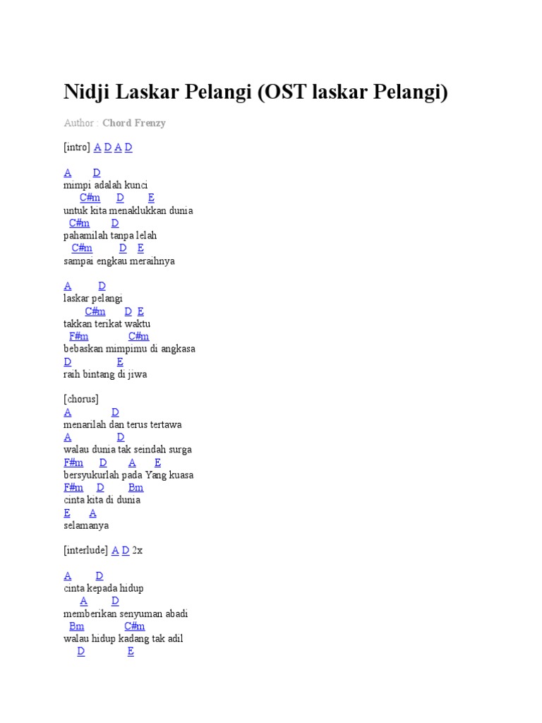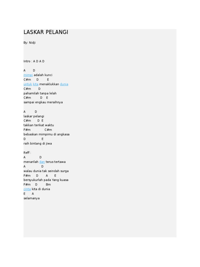 Lirik Dan Chord Gitar Laskar Pelangi By Nidji