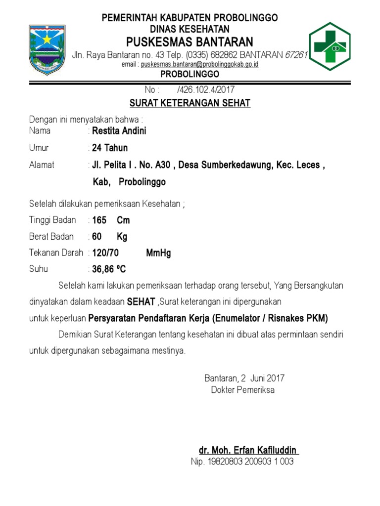 Klinik damai sehat sentosa jl. 7 bangeran, bumirejo, lendah, kulon progo telp : Contohnya seperti beberapa contoh surat keterangan domisili, surat keterangan sakit, ataupun surat. Surat keterangan sehat merupakan surat keterangan yang secara khusus dikeluarkan oleh dokter yang memiliki izin praktik tentang kondisi bila sudah paham mengenai apa itu surat keterangan sehat, serta cara pembuatannya, saatnya anda melihat beberapa contoh surat keterangan sehat. Contoh surat keterangan berbadan sehat.
