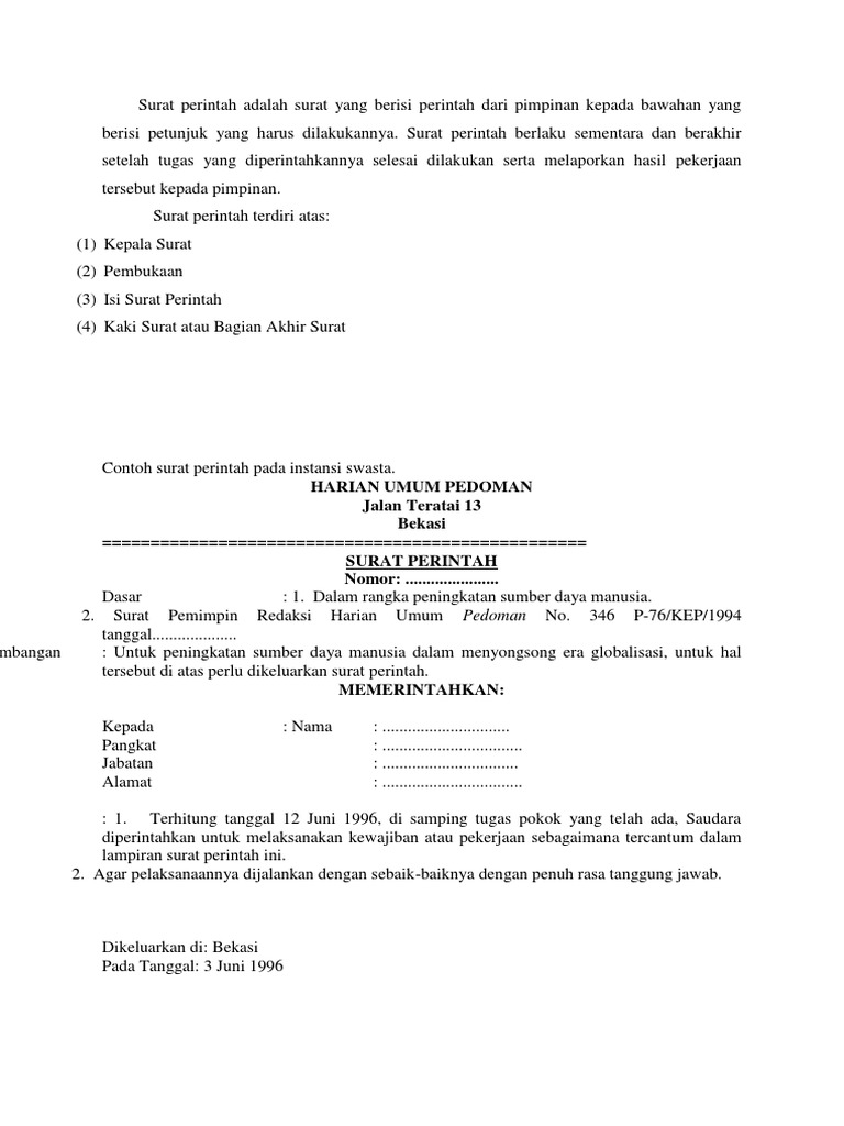 Contoh Surat Perintah Tugas Siskamling Surat Perintah ... from i0.wp.com Contoh surat dinas lengkap ada di sini. Badrul mozila akan memberikan beberapa contoh surat dinas resmi yang benar dan baik dari berbagai kasus. Menurut kamus besar bahasa indonesia, surat layanan adalah surat yang dikeluarkan oleh lembaga pemerintah atau badan atau lembaga resmi lainnya dan tidak dikenai biaya. Contoh 1 surat dinas resmi. Secara singkat, pengertian surat dinas merupakan surat yang dibuat oleh suatu instansi resmi atau dinas yang dimanfaatkan untuk berbagai kepentingan tertentu. Contoh surat dinas merupakan surat yang dibuat oleh dinas atau sekolah atau badan pemerintah dengan tujuan tertentu. Beberapa ketentuan untuk membuat surat resmi, termasuk yang berikut Departemen pendidikan nasional sekolah menengah.
