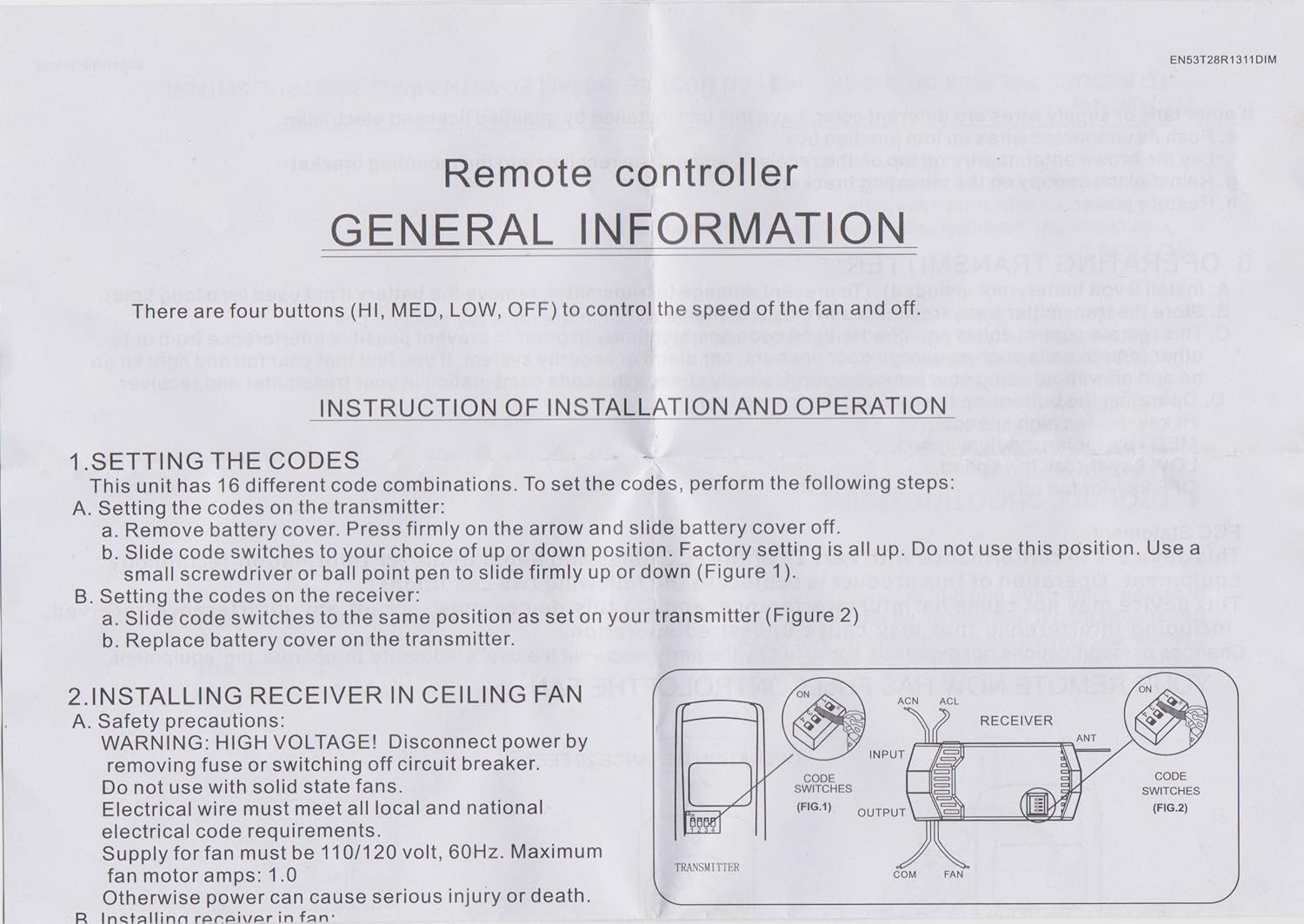 Is the ceiling fan remote controlled. Hampton bay ceiling fan remote control removal. There maybe a switch located on the fan stating 'remote/manual'. We post these pdf manuals as a resource for our site visitors. The battery has been changed but it still doesn't work.
